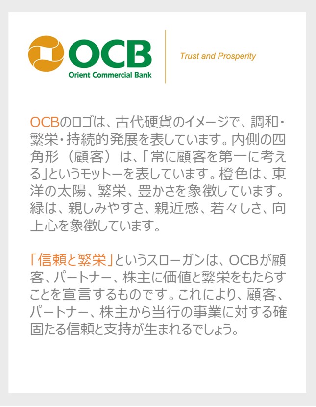 OCBは常に顧客、パートナー、株主に価値と繁栄をもたらすことを目指しています。顧客、パートナー、株主からからの確固たる信頼と継続的な支持を築くことが、当行のあらゆる活動の基盤としています。