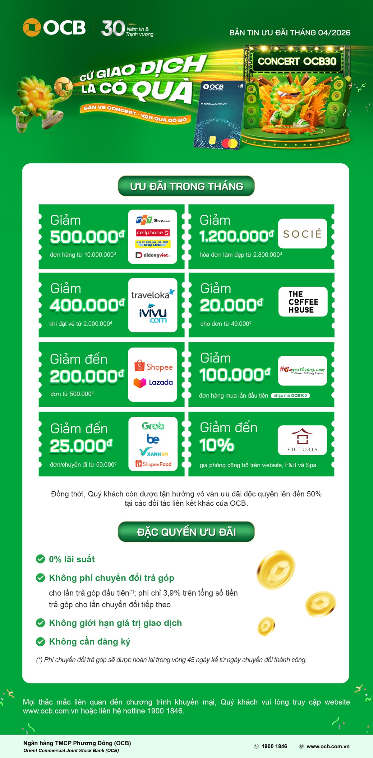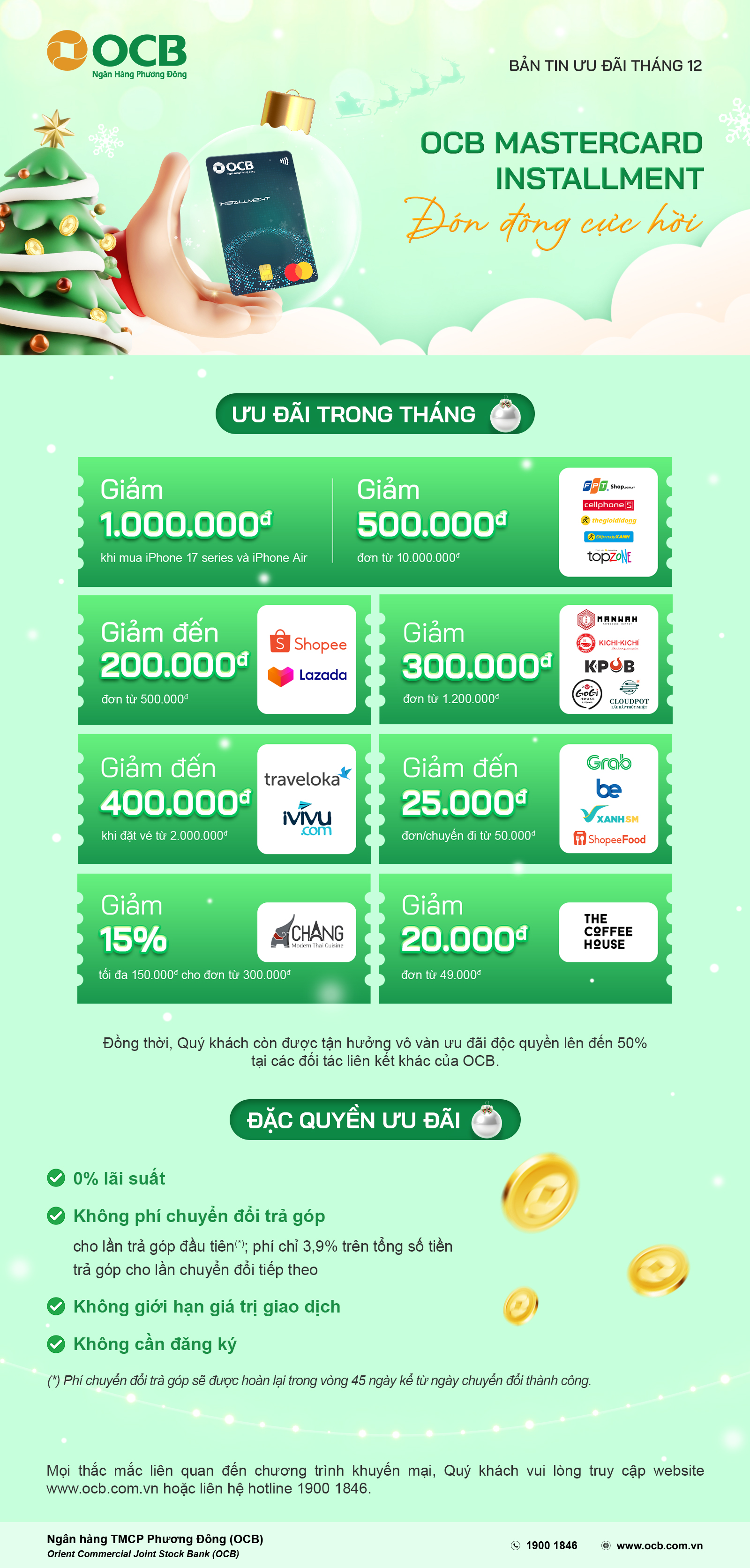 Ưu đãi thẻ OCB Installment Mastercard Platinum ...