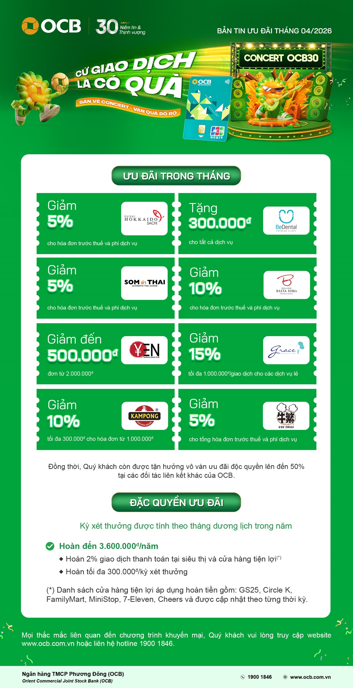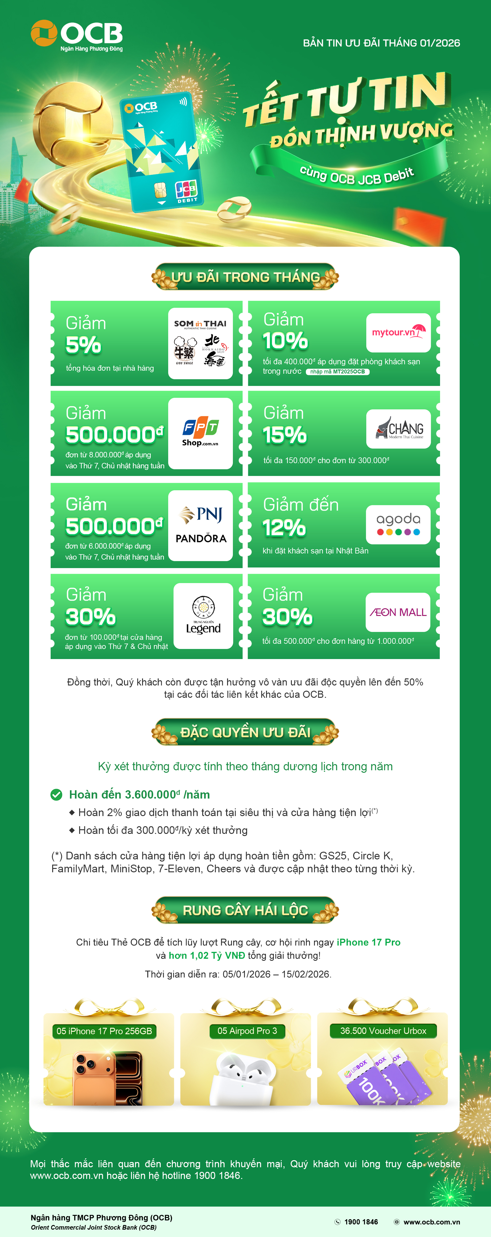Ưu đãi thẻ OCB JCB Debit - Vun đầy sống khéo