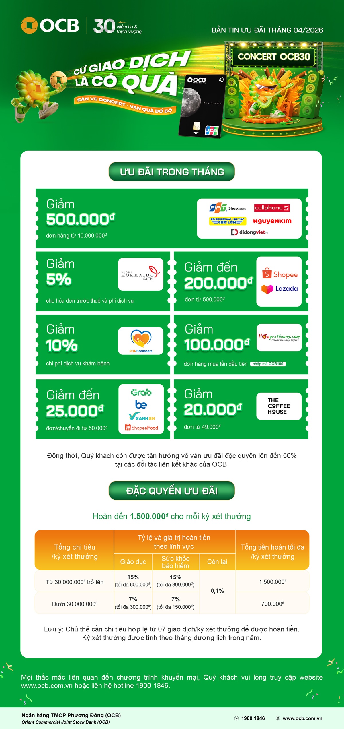 Ưu đãi thẻ OCB JCB Platinum - Nâng tầm cuộc sống
