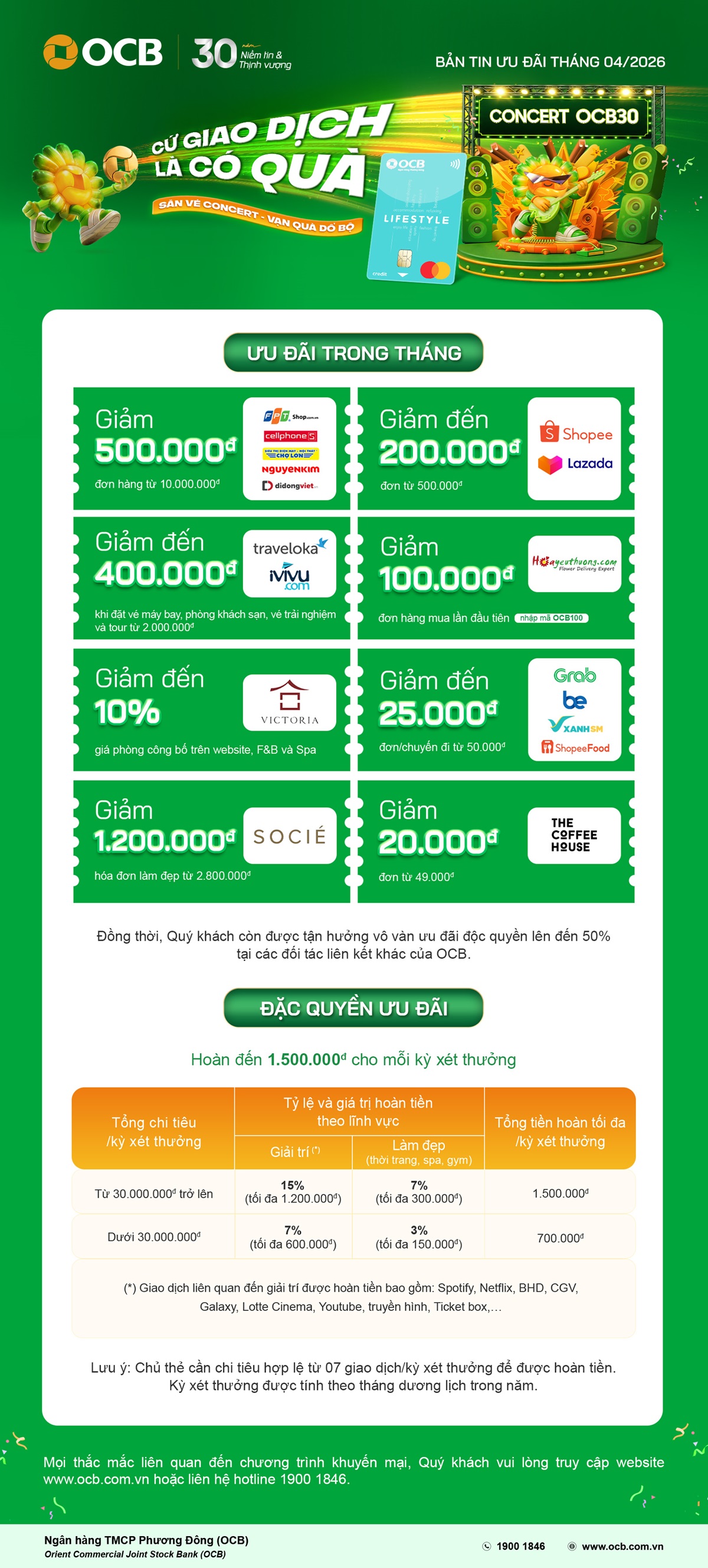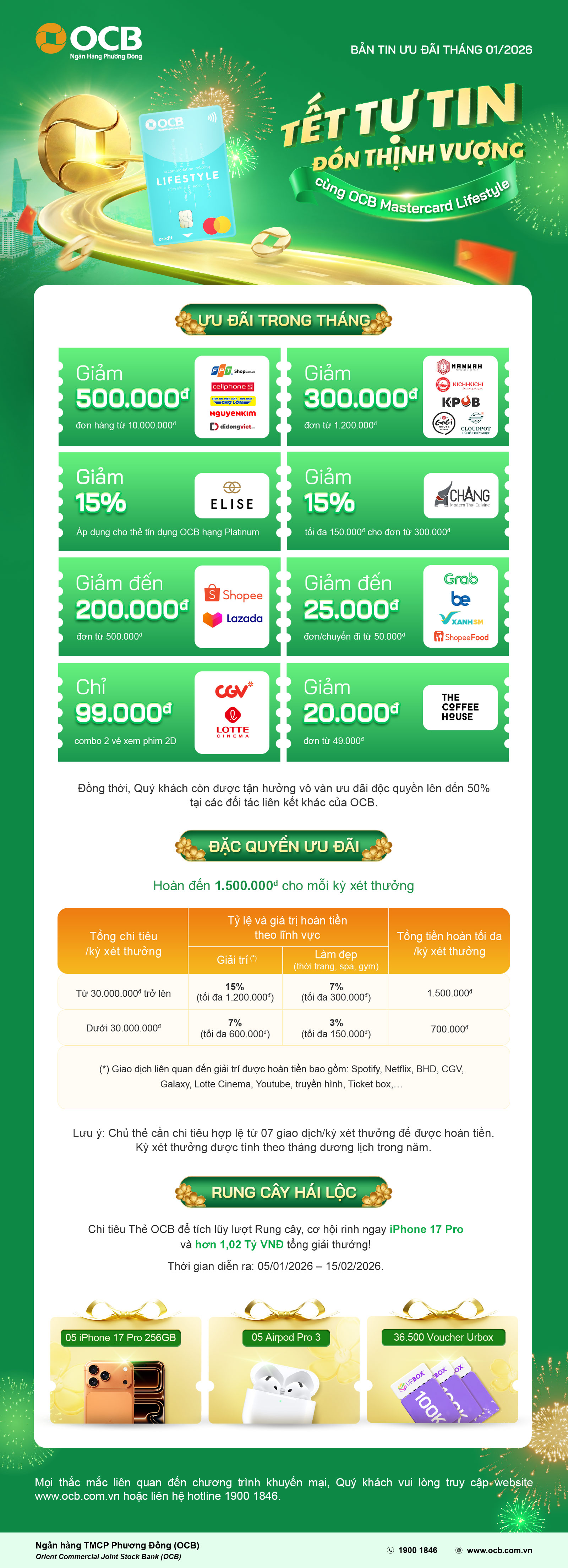 Ưu đãi thẻ OCB Mastercard Lifestyle - Nhẹ nhàng...