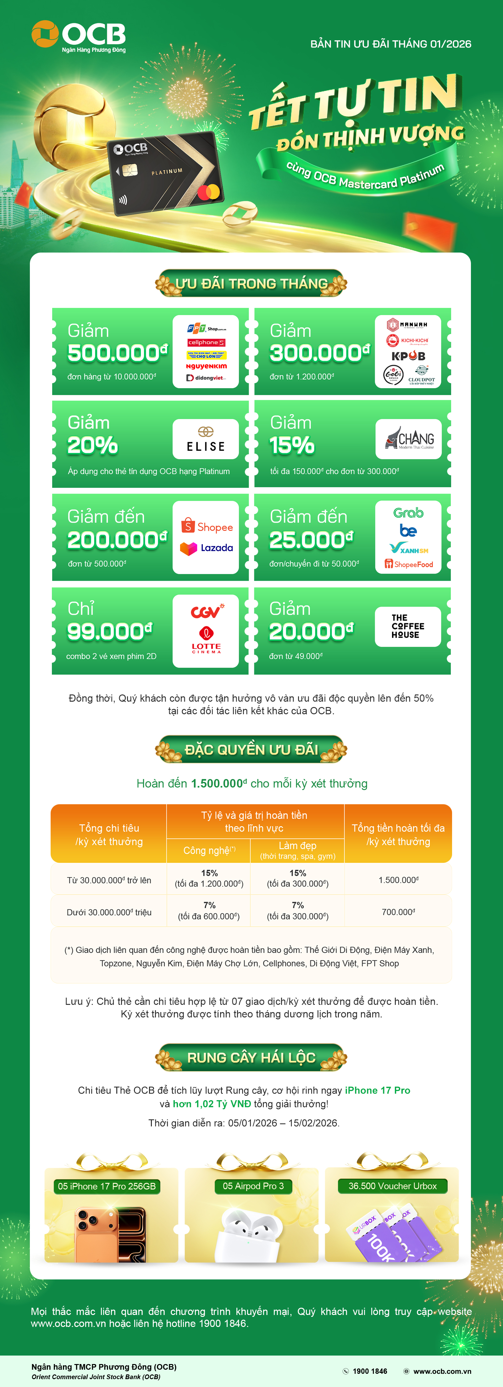 Ưu đãi thẻ OCB Mastercard Platinum - Tự tin sốn...