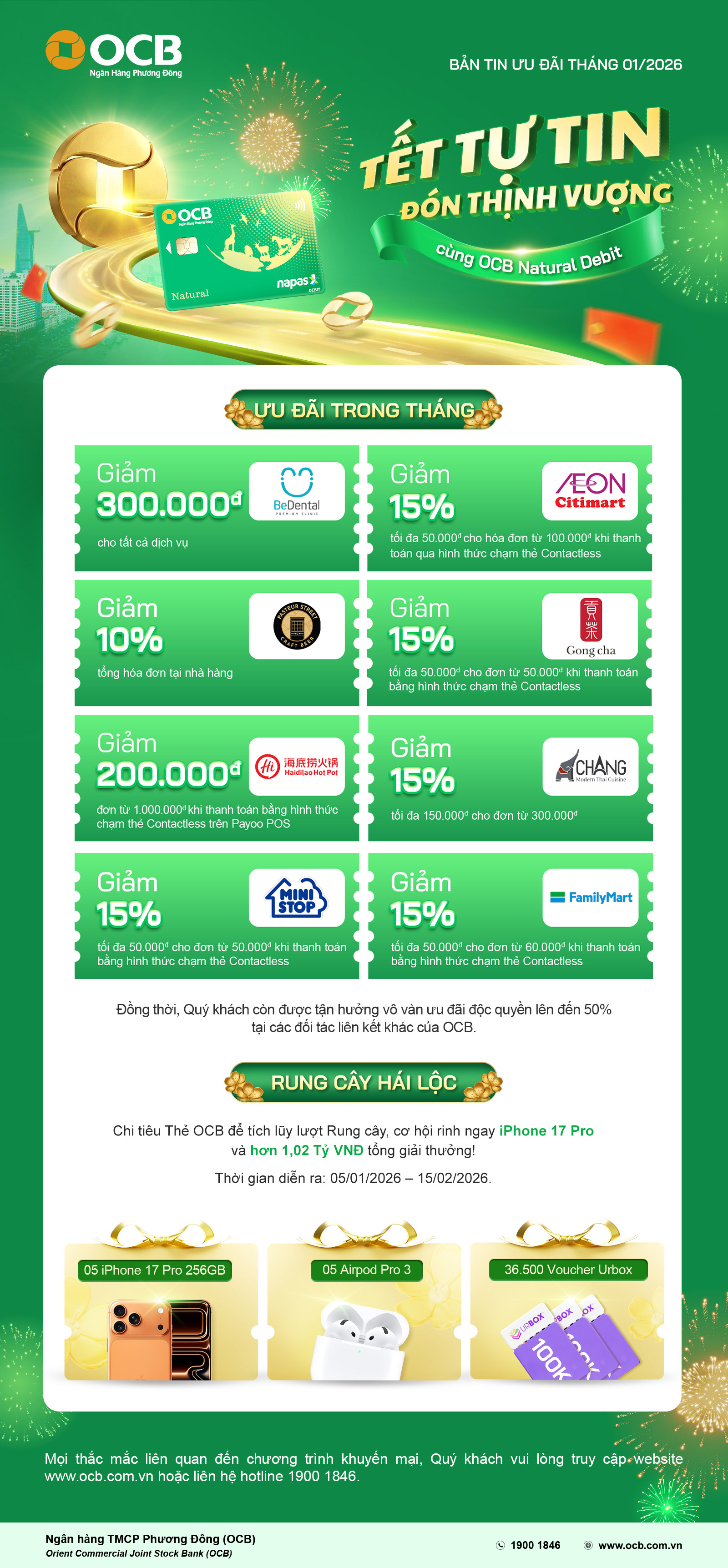 Ưu đãi thẻ OCB Natural Debit - Chuẩn sống tiện lợi