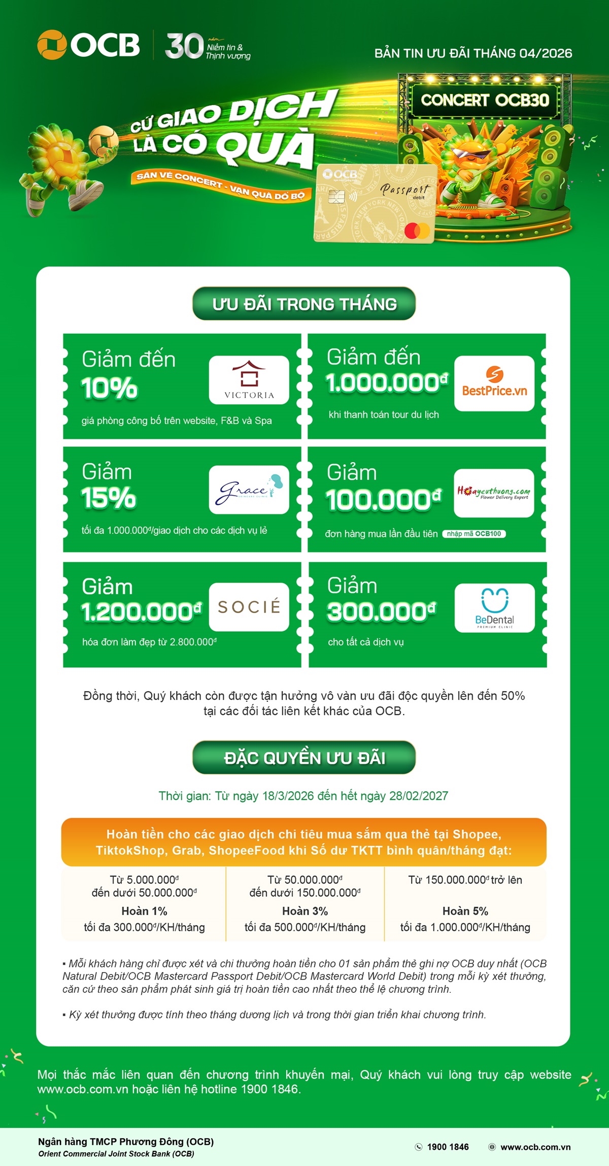 Ưu đãi thẻ OCB Mastercard Passport Debit - Sống...