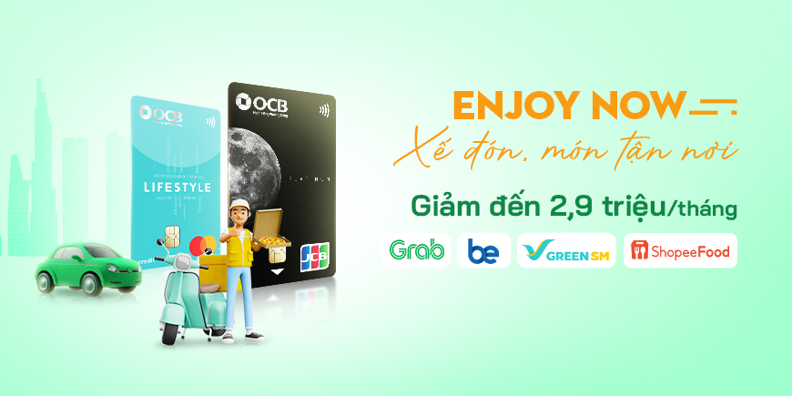 Gọi xe, đặt món dễ dàng mọi lúc mọi nơi! Chỉ cần thanh toán bằng thẻ tín dụng quốc tế OCB nhận ngay ưu đãi đến 2,9 triệu đồng/tháng tại Grab, Be, XanhSM và ShopeeFood.