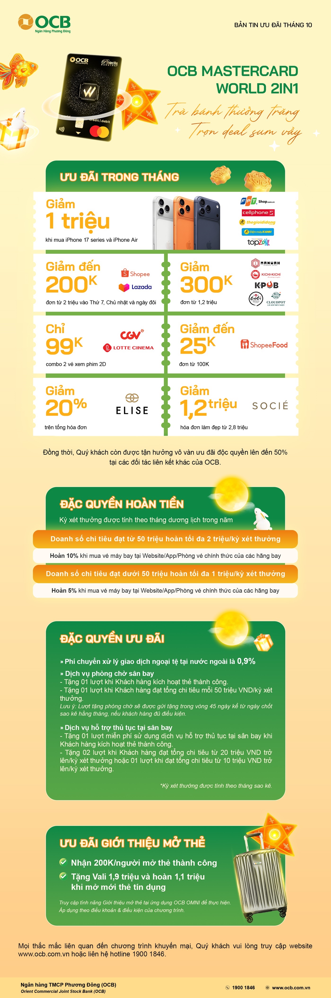 [Ưu đãi thẻ] Giảm 1 triệu đồng khi mua iPhone 17 Series với thẻ OCB