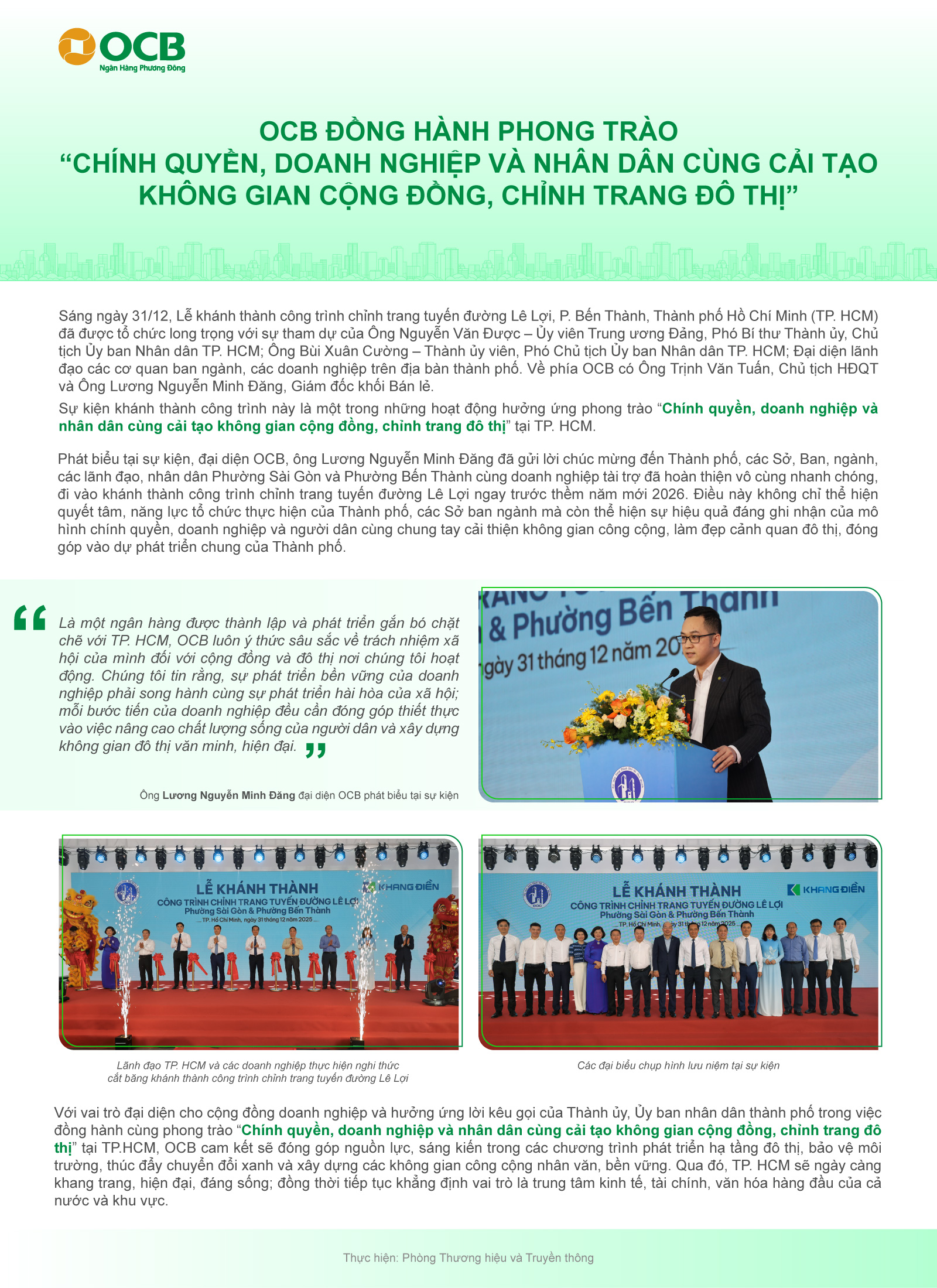 OCB đồng hành phong trào “Chính quyền, doanh nghiệp và nhân dân cùng cải tạo không gian cộng đồng, chỉnh trang