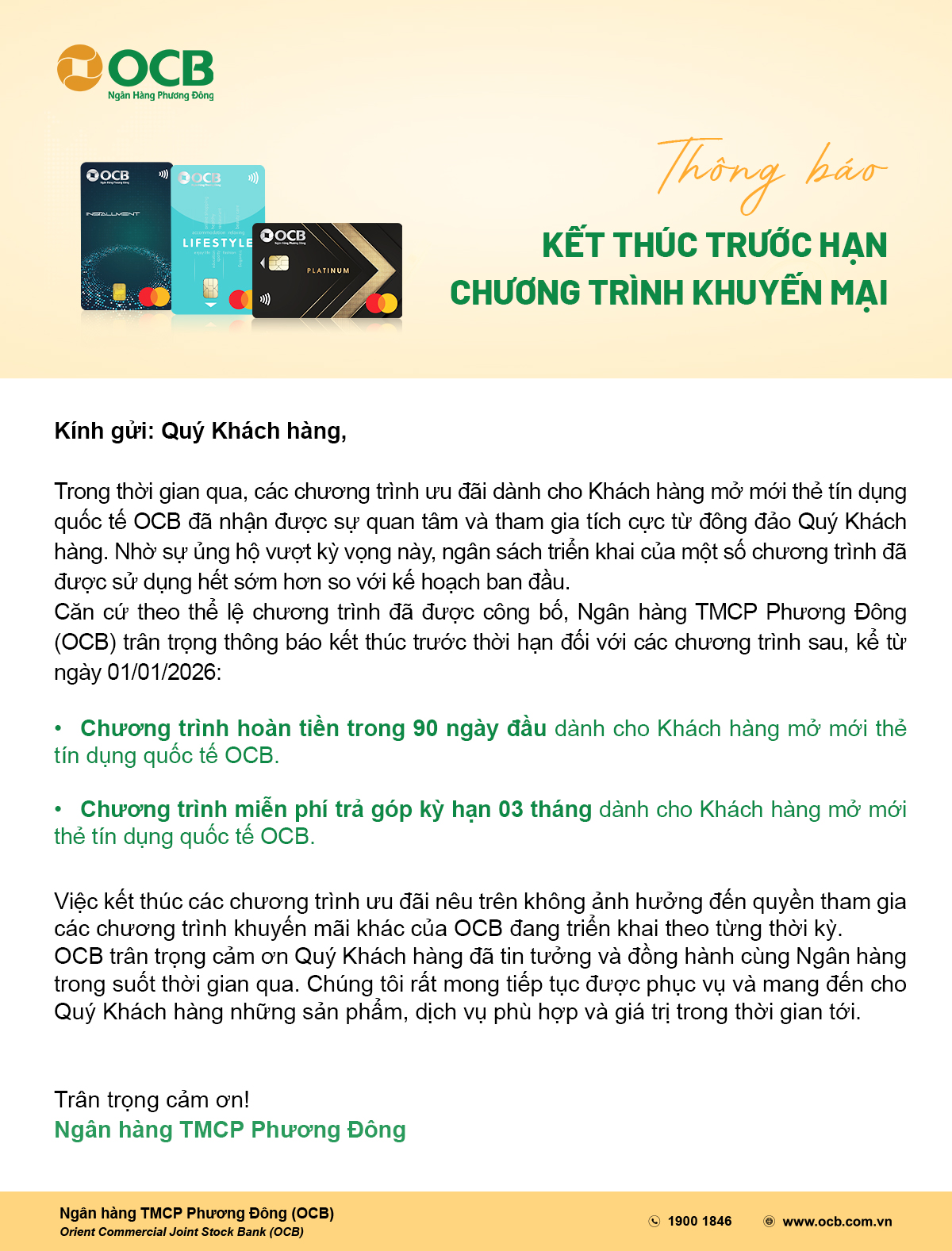 Thông báo kết thúc trước hạn chương trình khuyế...