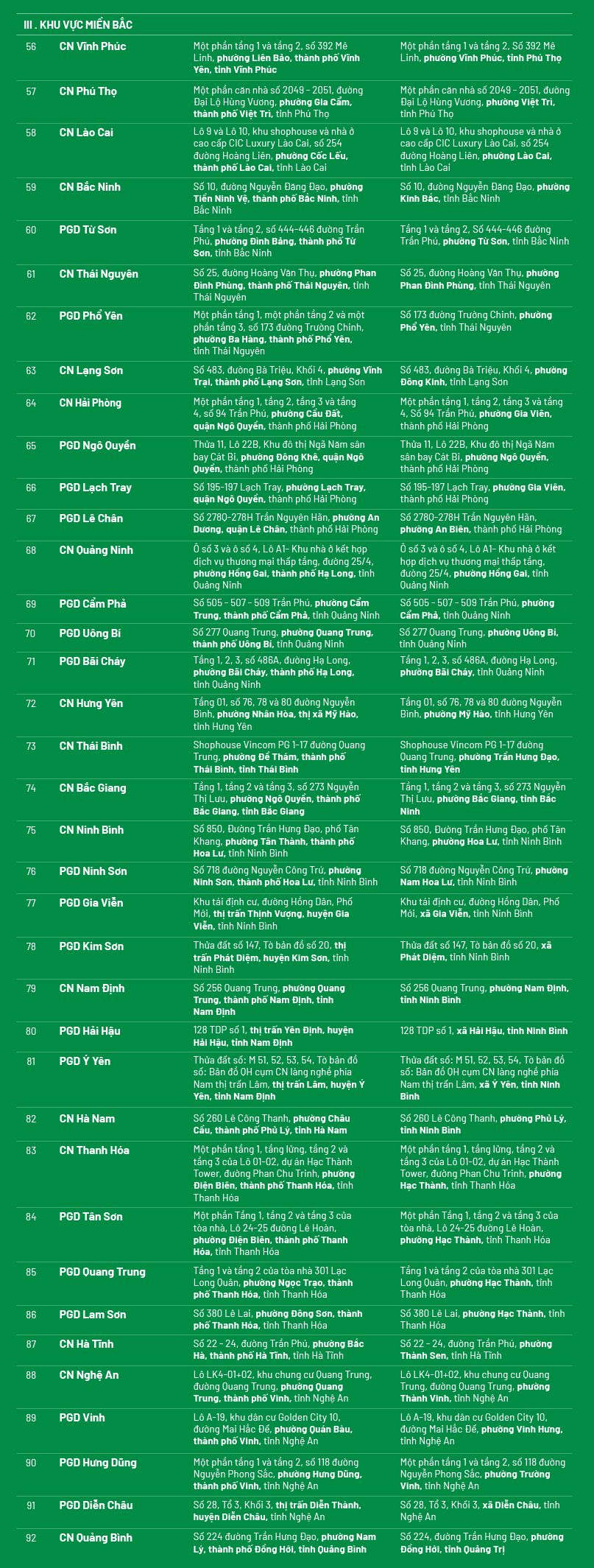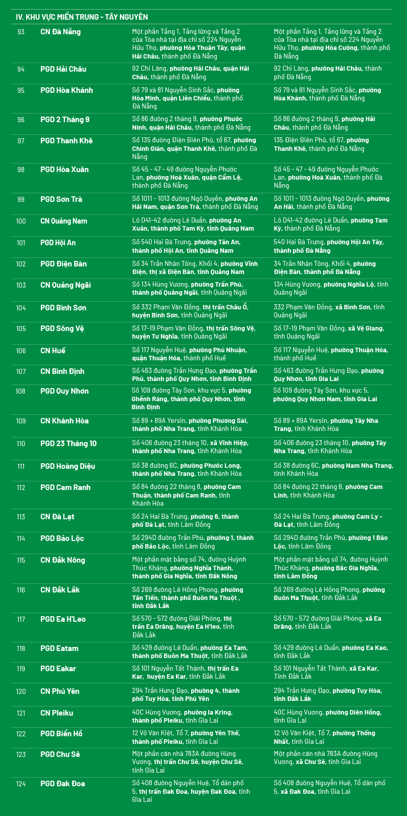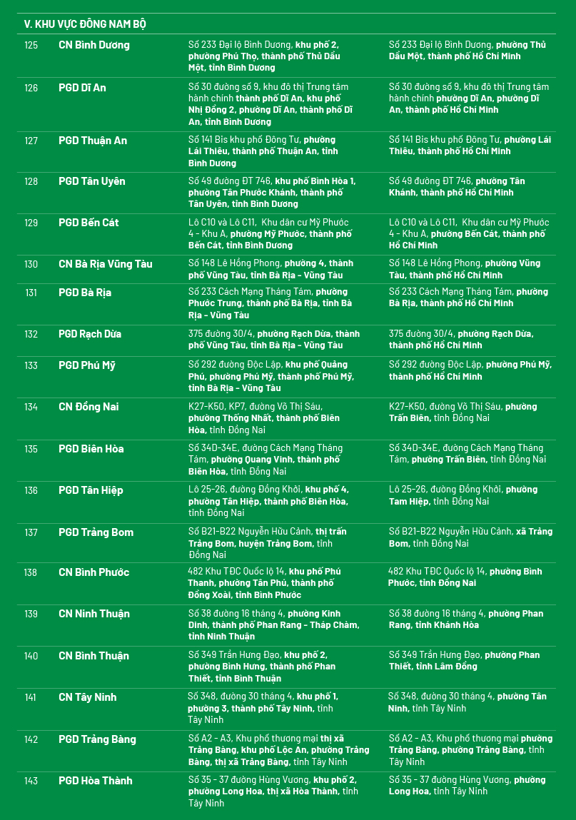 Thông báo thay đổi địa chỉ nhưng không thay đổi địa điểm các CN/PGD