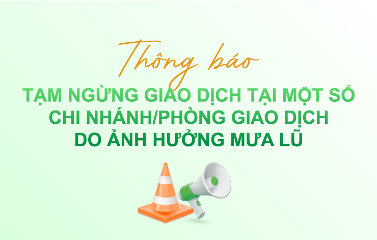 Thông báo tạm ngừng giao dịch tại một số CN/PGD do ảnh hưởng mưa lũ