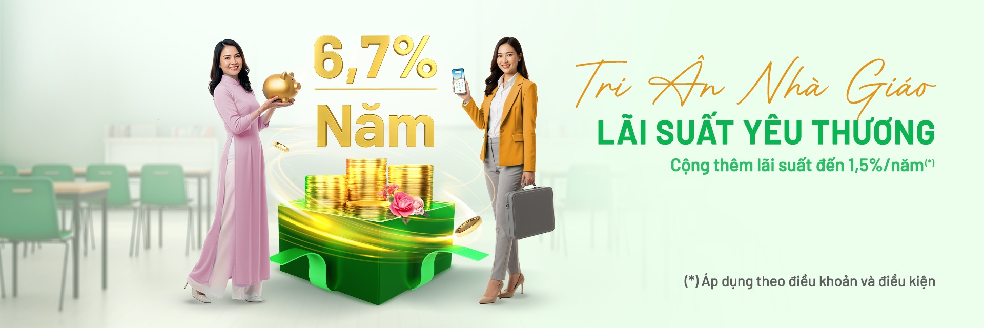 Tháng 11 là tháng để chúng ta gửi lời cảm ơn sâu sắc đến những người đã tận tâm “gieo chữ”, “ươm mầm” tri thức cho bao thế hệ. Với lòng biết ơn với những người luôn tận tụy và bền bỉ trong sự nghiệp trồng người, OCB dành tặng ưu đãi đặc biệt khi gửi tiết kiệm.