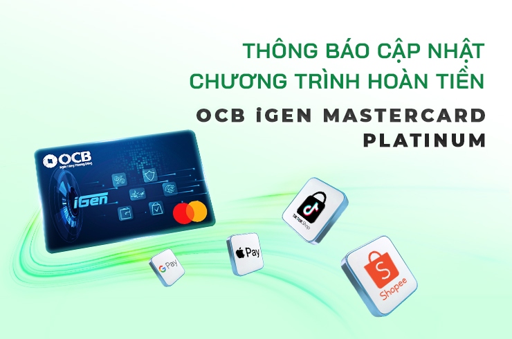 Thông báo cập nhật chương trình hoàn tiền thẻ OCB iGen Mastercard Platinum