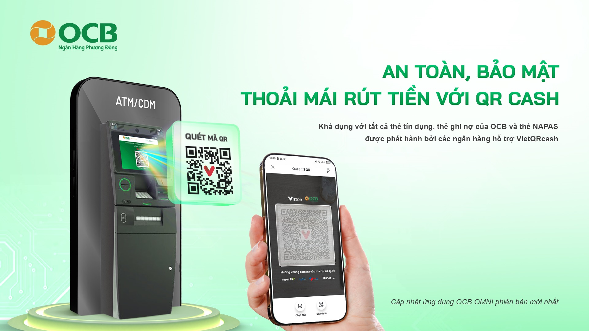 Nhằm nâng cao trải nghiệm khách hàng và đáp ứng nhu cầu giao dịch nhanh chóng, OCB đã triển khai tính năng rút tiền bằng mã QR tại hệ thống ATM và CDM của OCB trên toàn quốc. Với tính năng này, khách hàng có thể nhanh chóng rút tiền mà không cần mang theo thẻ, đồng thời đảm bảo mọi giao dịch luôn an toàn và bảo mật, tránh rủi ro lộ thông tin thẻ, mật khẩu, số CVC/CVV,…